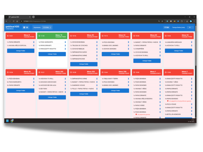 El sistema KDS (Kitchen Display System) permite a tu cocina recibir y gestionar los pedidos en tiempo real. Olvídate del papel y mejora la eficiencia al tener todos los pedidos visibles en una pantalla.